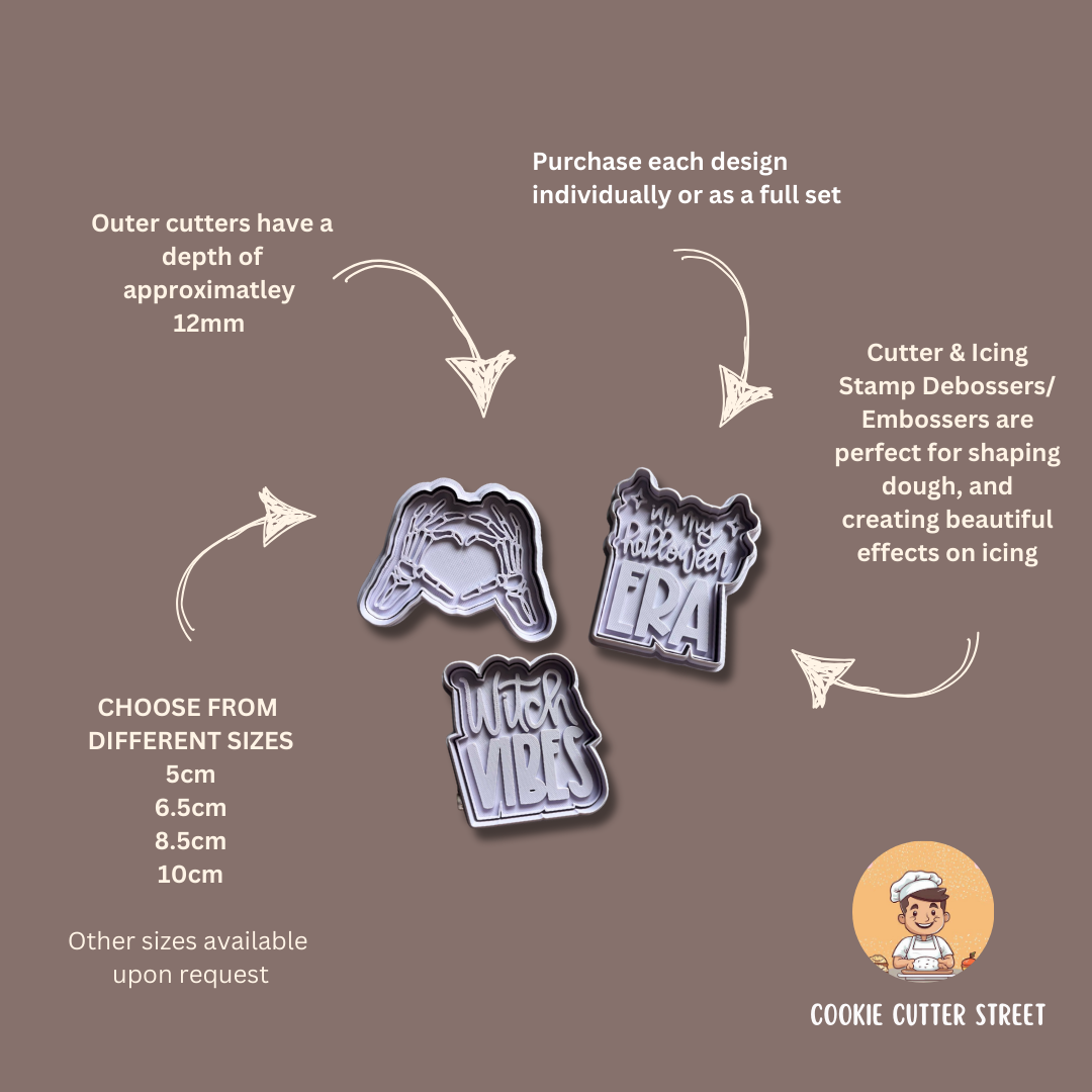 In My Halloween Era Witch Vibes Cookie Cutters & Icing Embossers! Perfect for cute Halloween-themed bakes or unique handmade gifts.