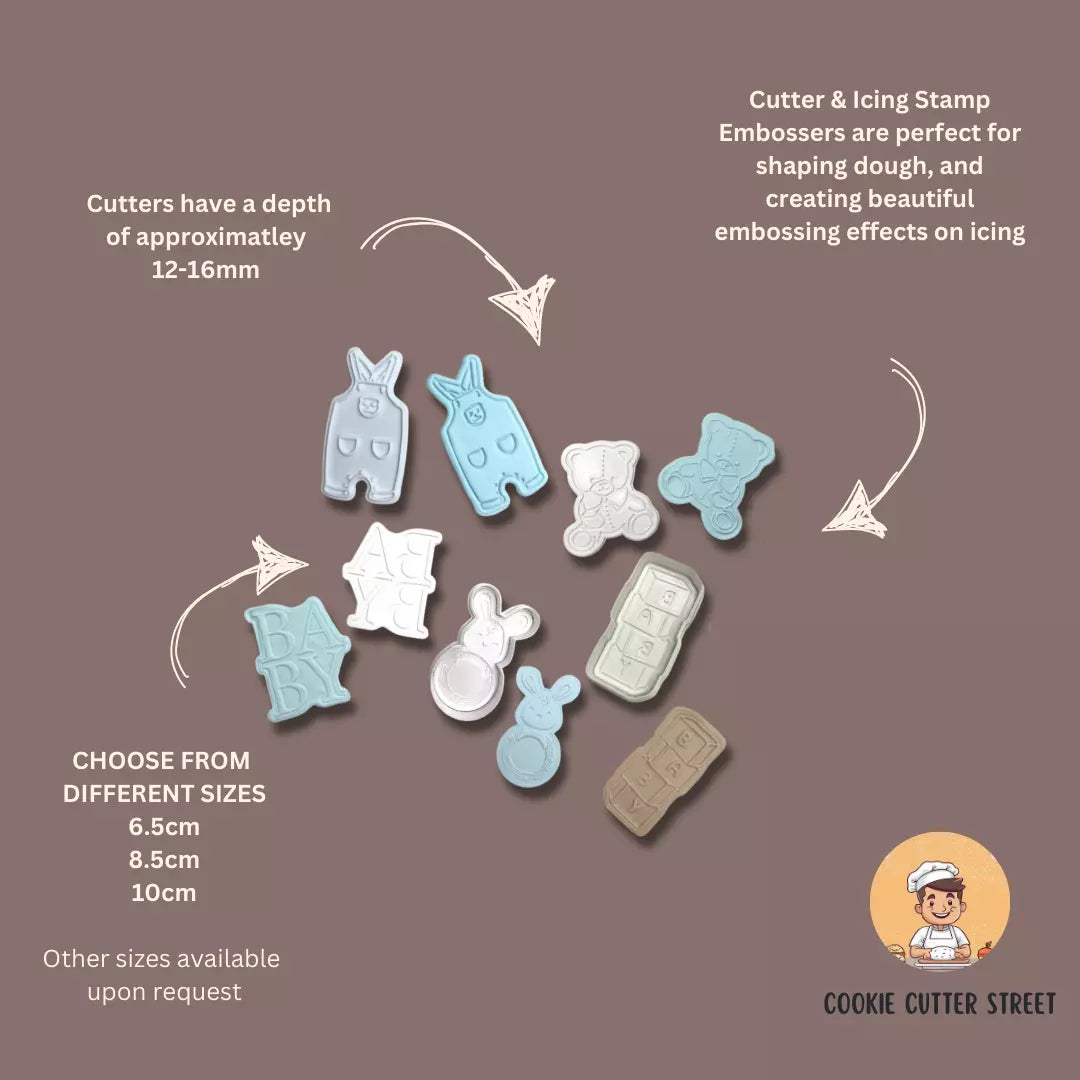 Set of 5 Cute Baby Shower Cutters & Icing Embossers For Cookies & Cupcake Toppers