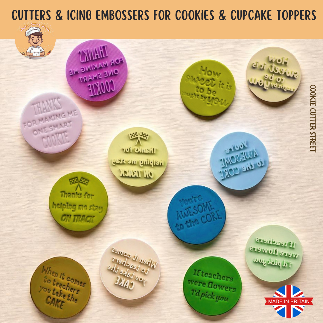 Each design is sold individually, so you can choose the exact message you want to share—ideal for mixing and matching or selecting the perfect sentiment for your favourite teacher. These cutters and embossers are crafted from high-quality PLA and designed with both beginners and professional bakers in mind.